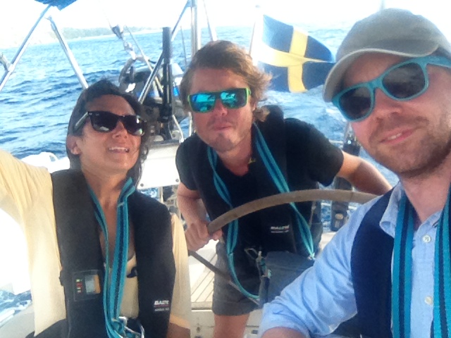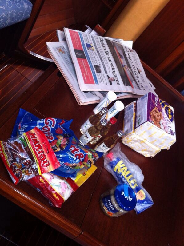 Fulladdad med svenska godsaker, tidningar, nyheter och strålande humör kändes det enormt roligt att Johan kommit hela vägen från Sverige och efter lite pusslande med nya flighter äntligen mönstra ombord Gåva.