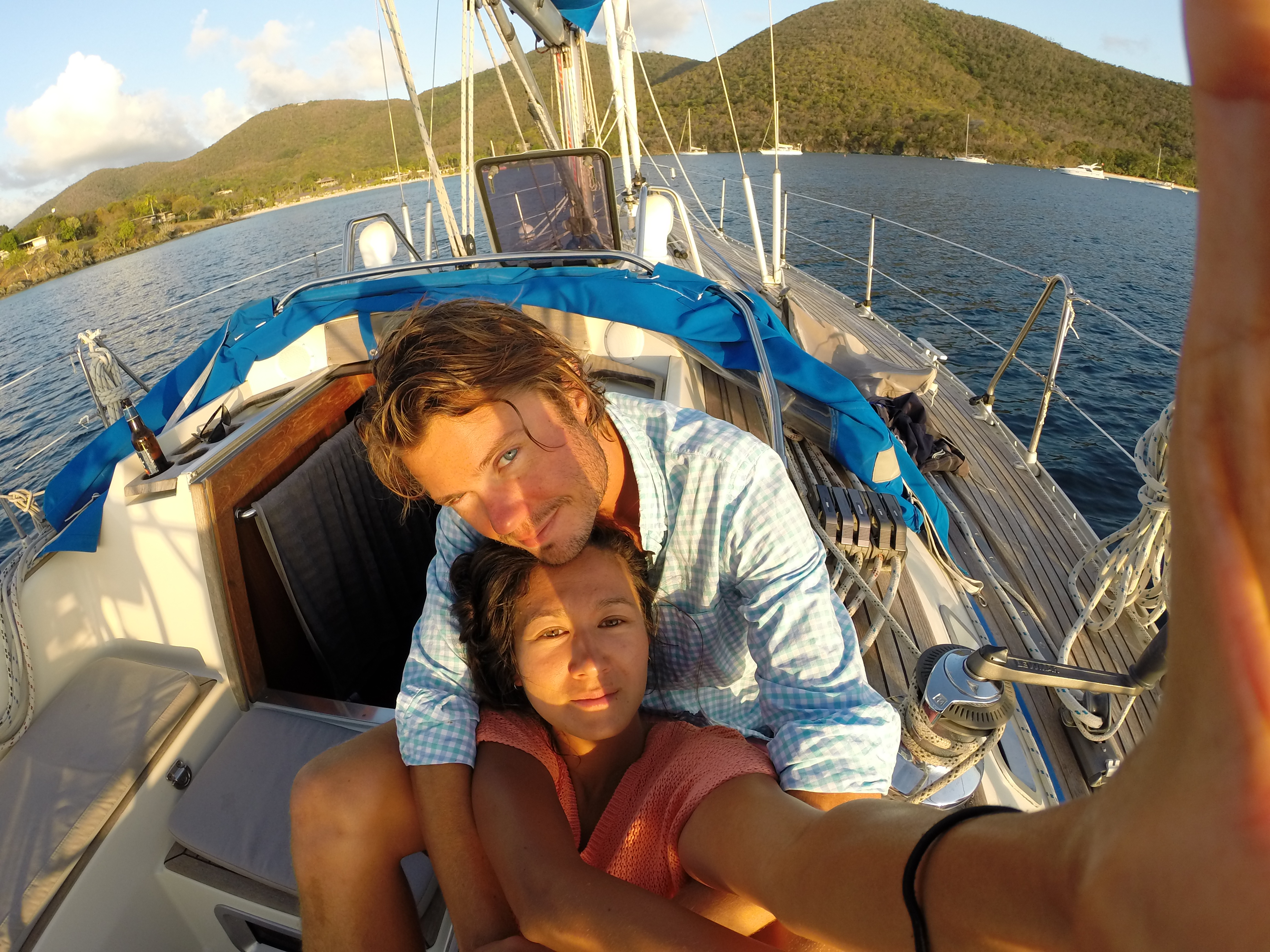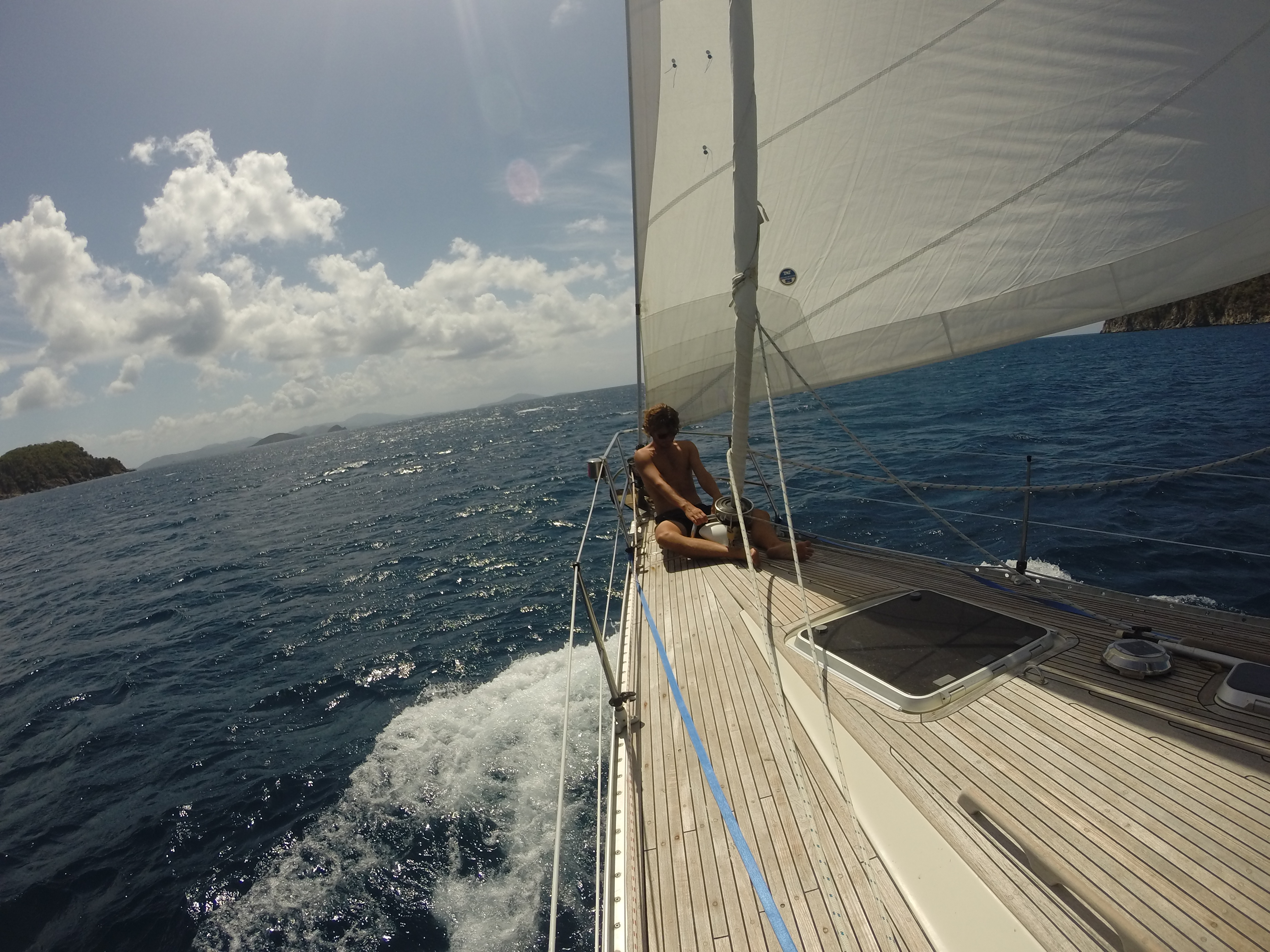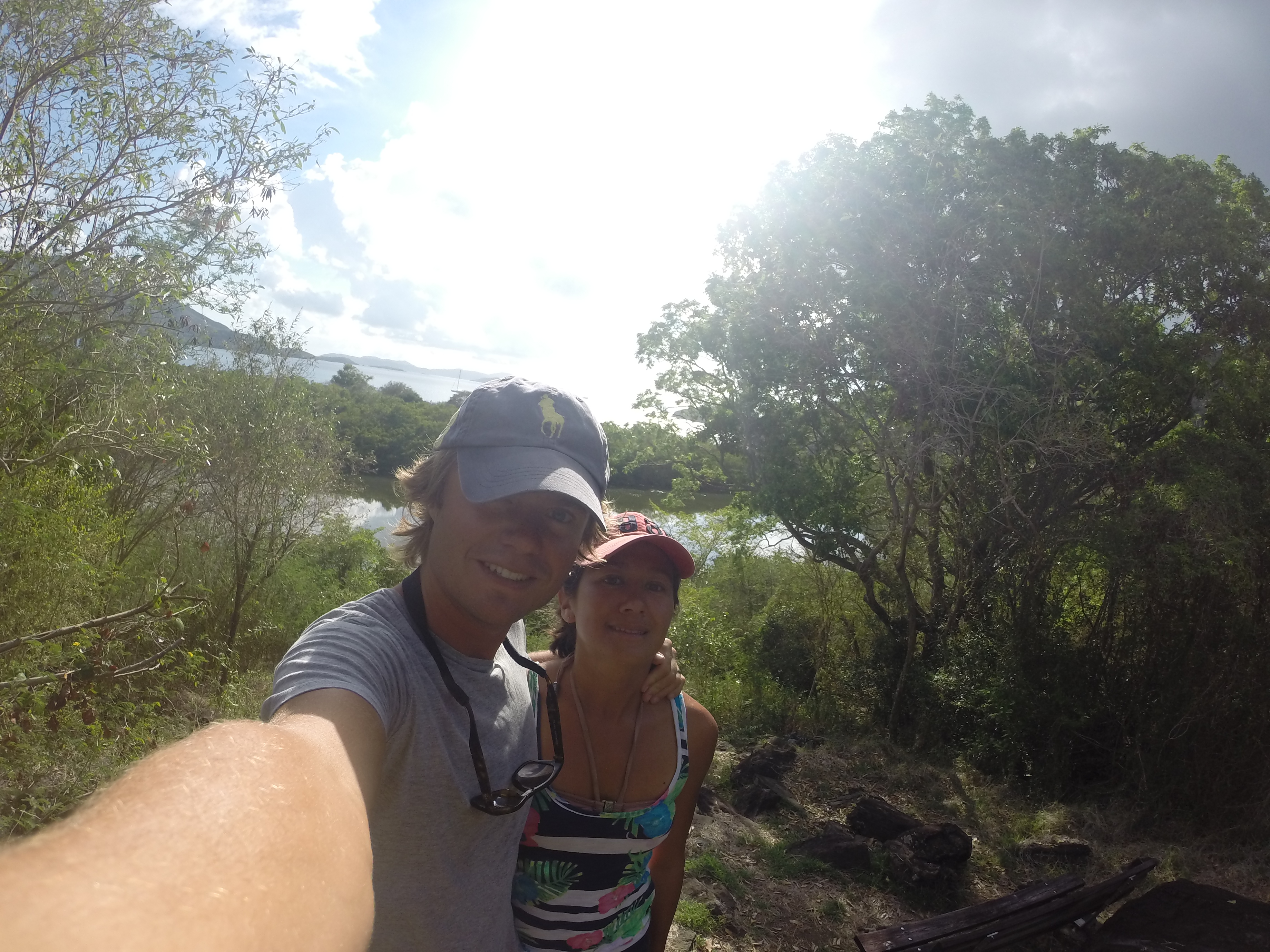 Påskafton bjöd på snorkling, Johans fnittrande med go pron i högsta hugg för selfiesbilder och ännu en simtur för Erik in till Rangerkillarna för att ladda ned ett väder via deras satellit och i smyg boka en ny flygybiljett åt Johan från Puerto Rico eftersom vi inte skulle hinna till St Thomas. Därefter en fullmatad påsklunch med sill, lax, ägghalvor, smuttandes på snaps och knäckebröd m.m. i strålande sol och vindlä. Humöret var nu på topp.