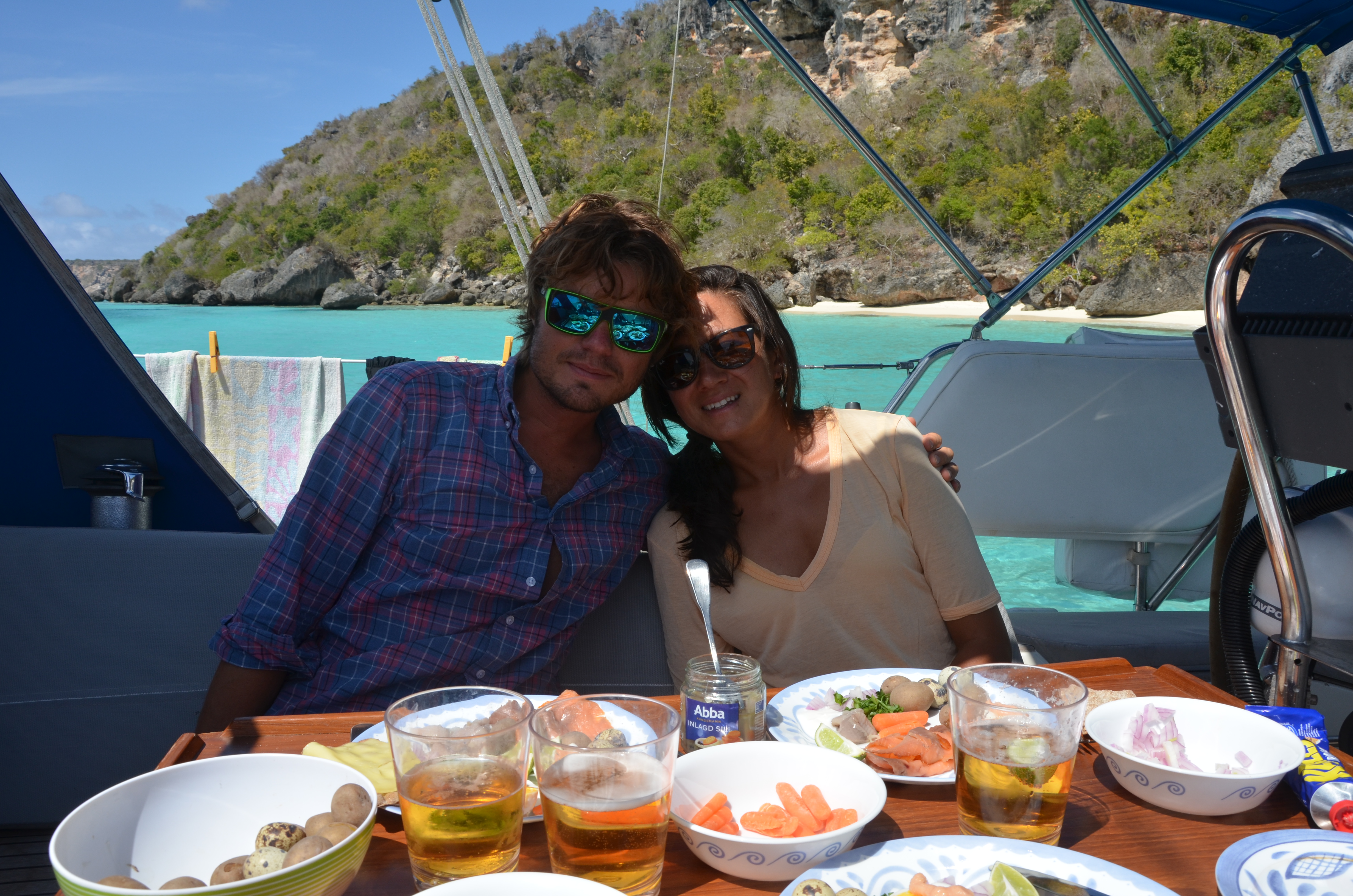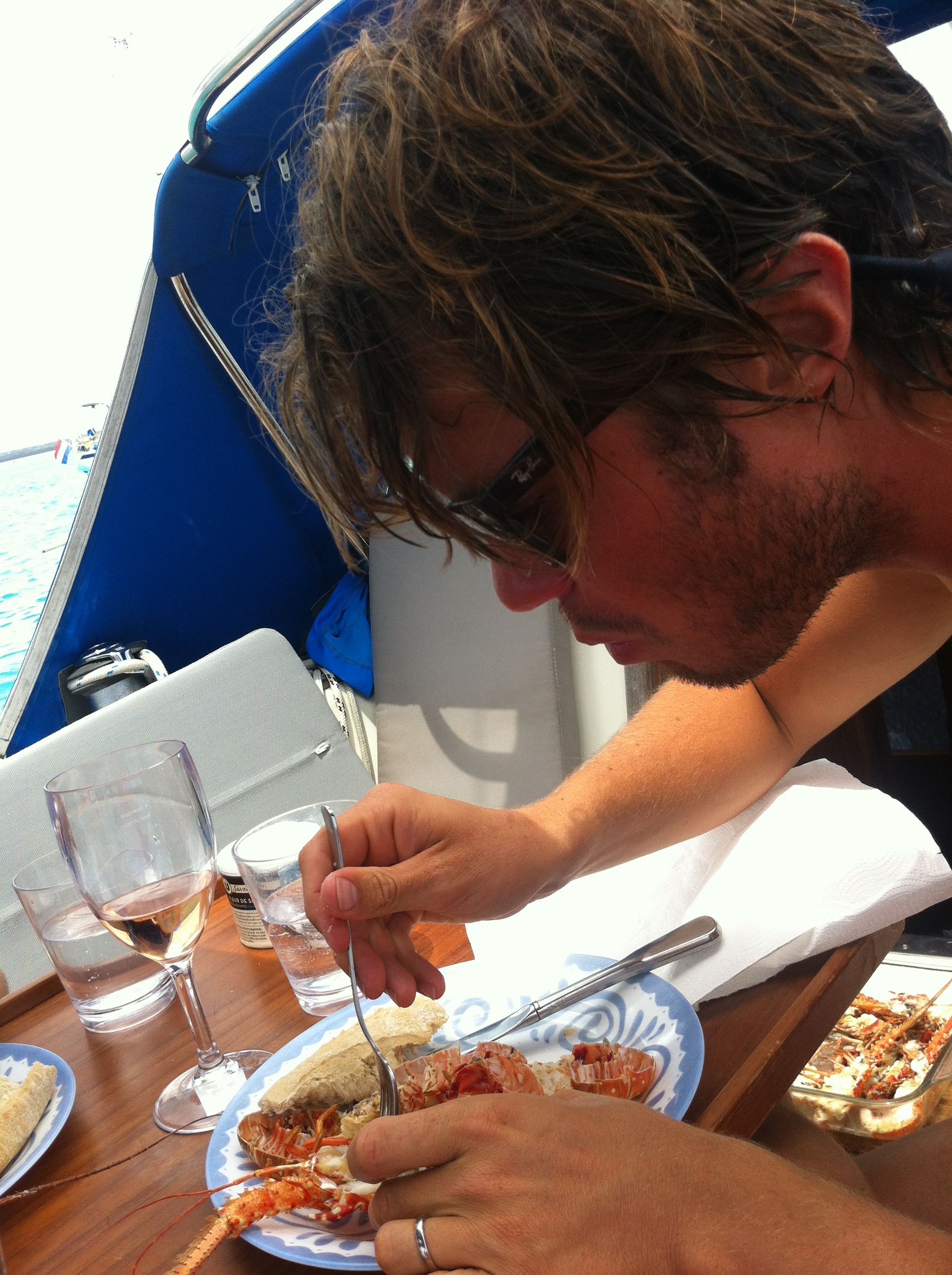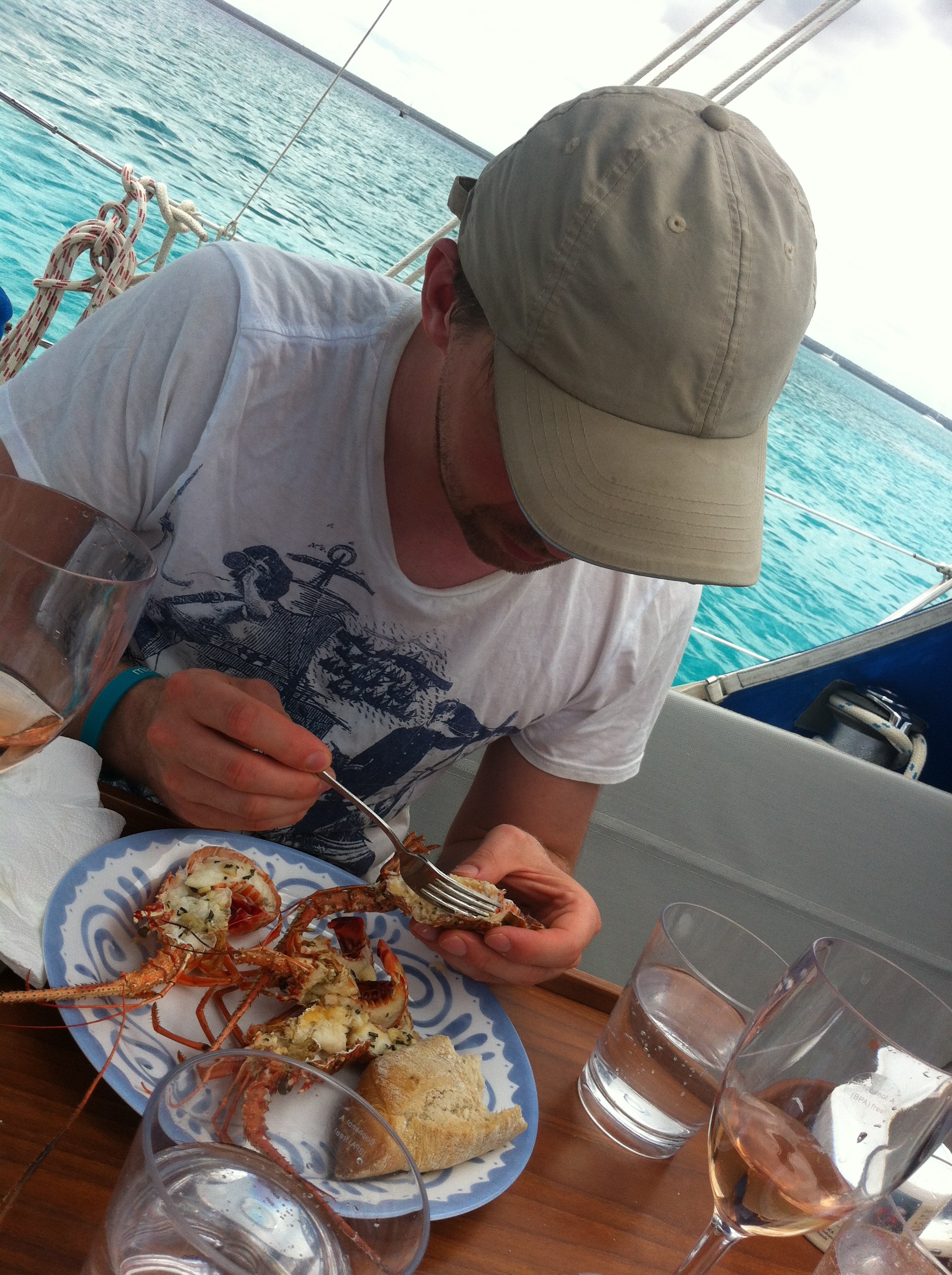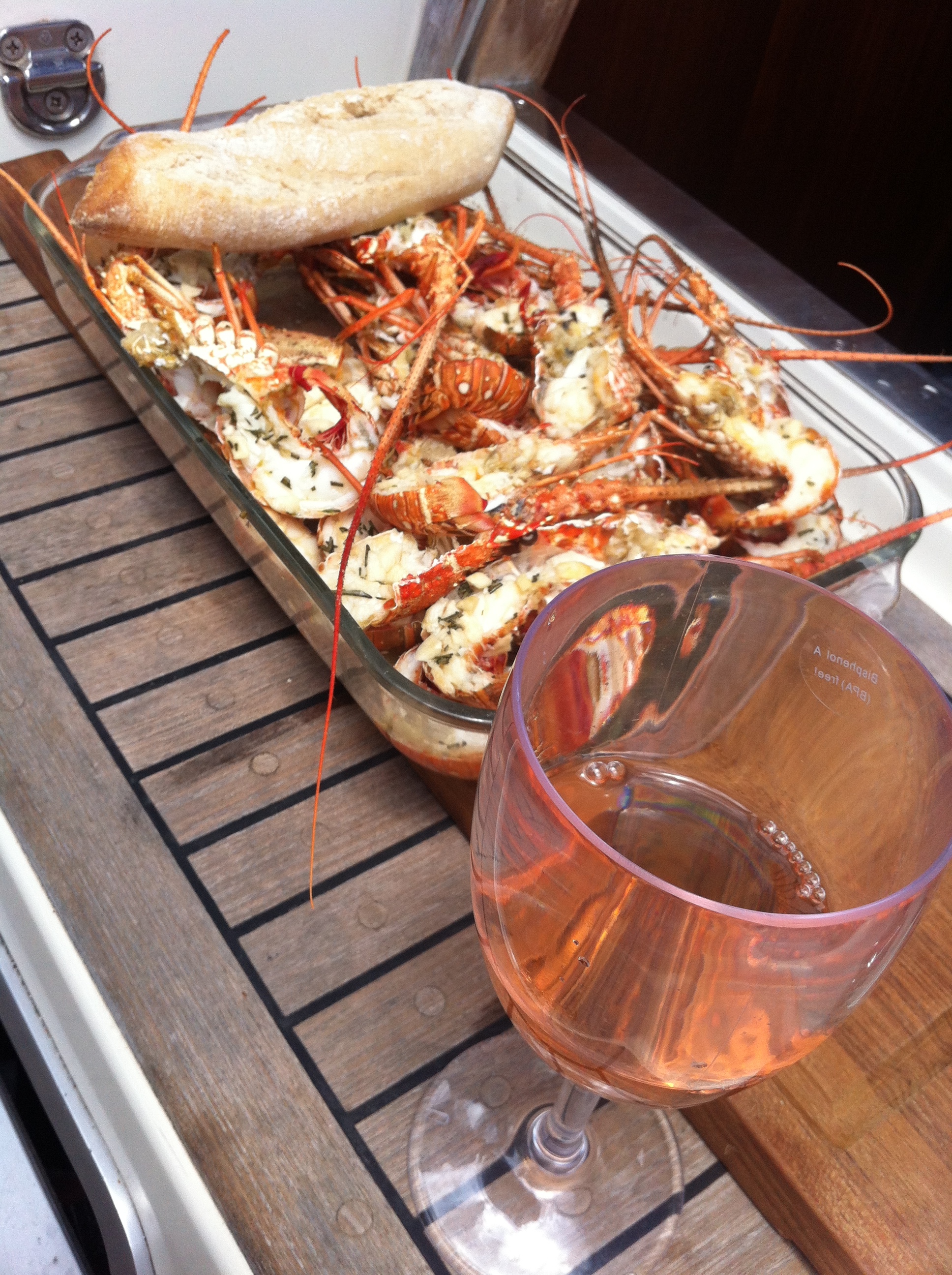 Som tur är tarvar ju vissa djur vissa drycker, så en timme senare satt vi där i sittbrunnen med nygratinerade humrar, franska bake off baguetter och iskallt rosévin. Stämningen var på topp och vi hade inte en tanke på att lämna varken Isla Catalina eller detta fantastiska land.