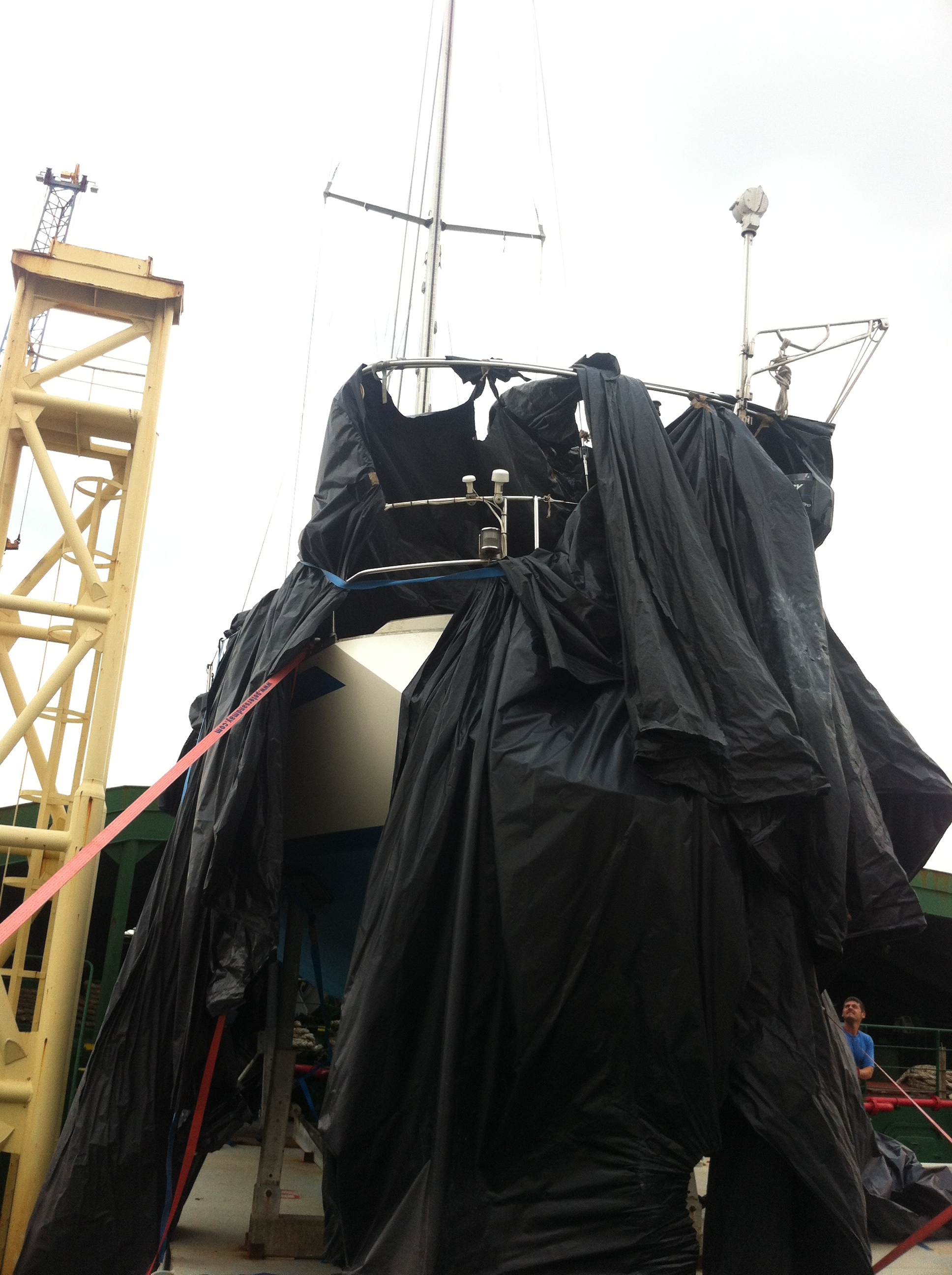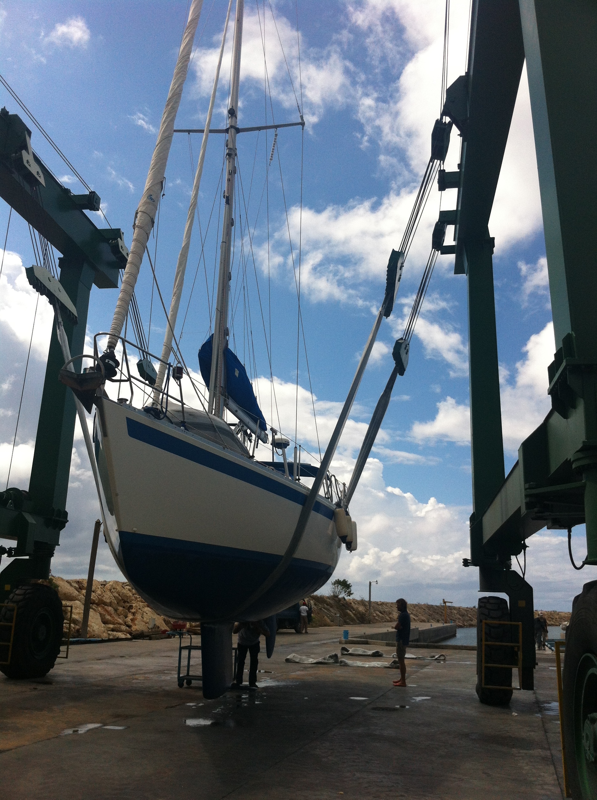 Men som alltid till sjöss händer det oväntade saker när man minst anar det. Plötsligt ringde Mauro från Marinan och meddelade att han har propellern inom tio minuter och är klar att lyfta Gåva inom två timmar.