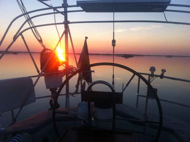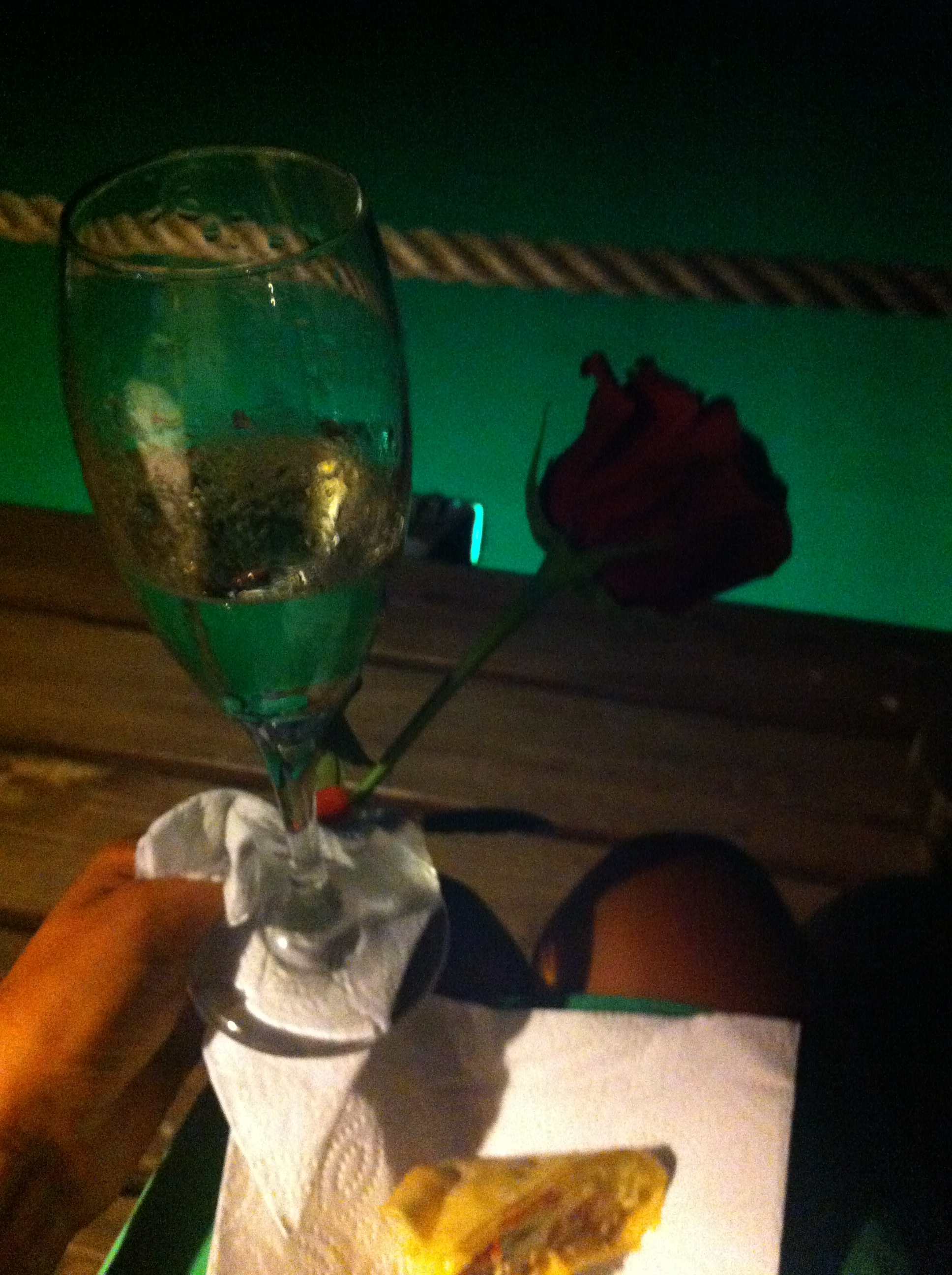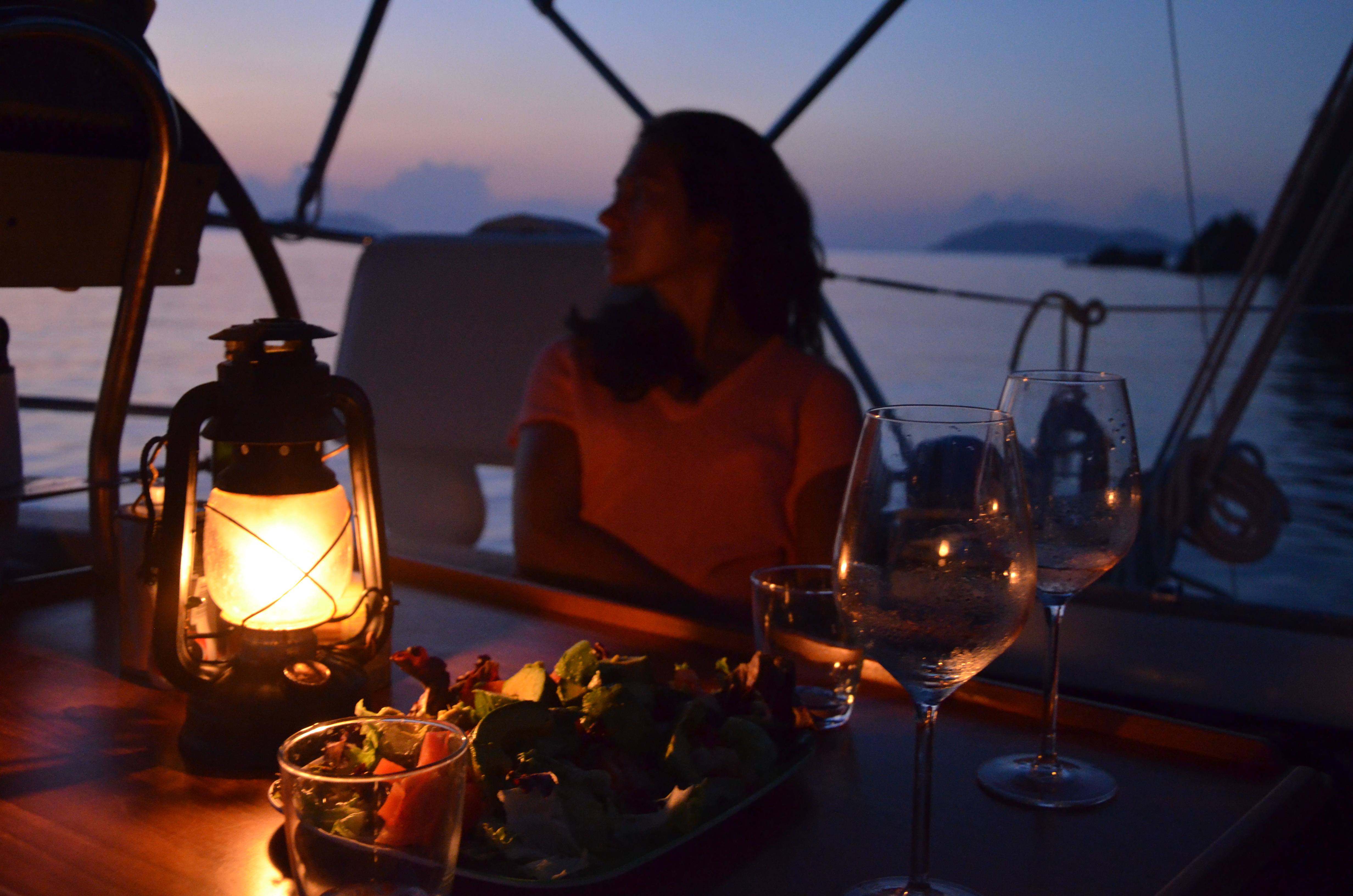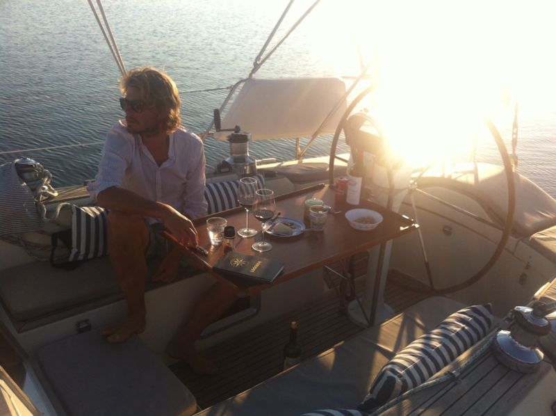 Lätt trängda av situationen hade vi inte mycket annat val än att betala och när solen gick ned tuffade vi ut från hamnen, avnjöt var sin pizza och skålade i champagne över att allt löst sig så bra! (Hade inte druckit dessa om vi visste vad som sedan väntade)
