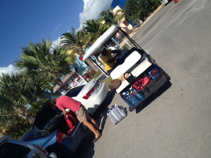 Handling innan vi blev sjösatta – en av marinans golfbilar hjälper oss