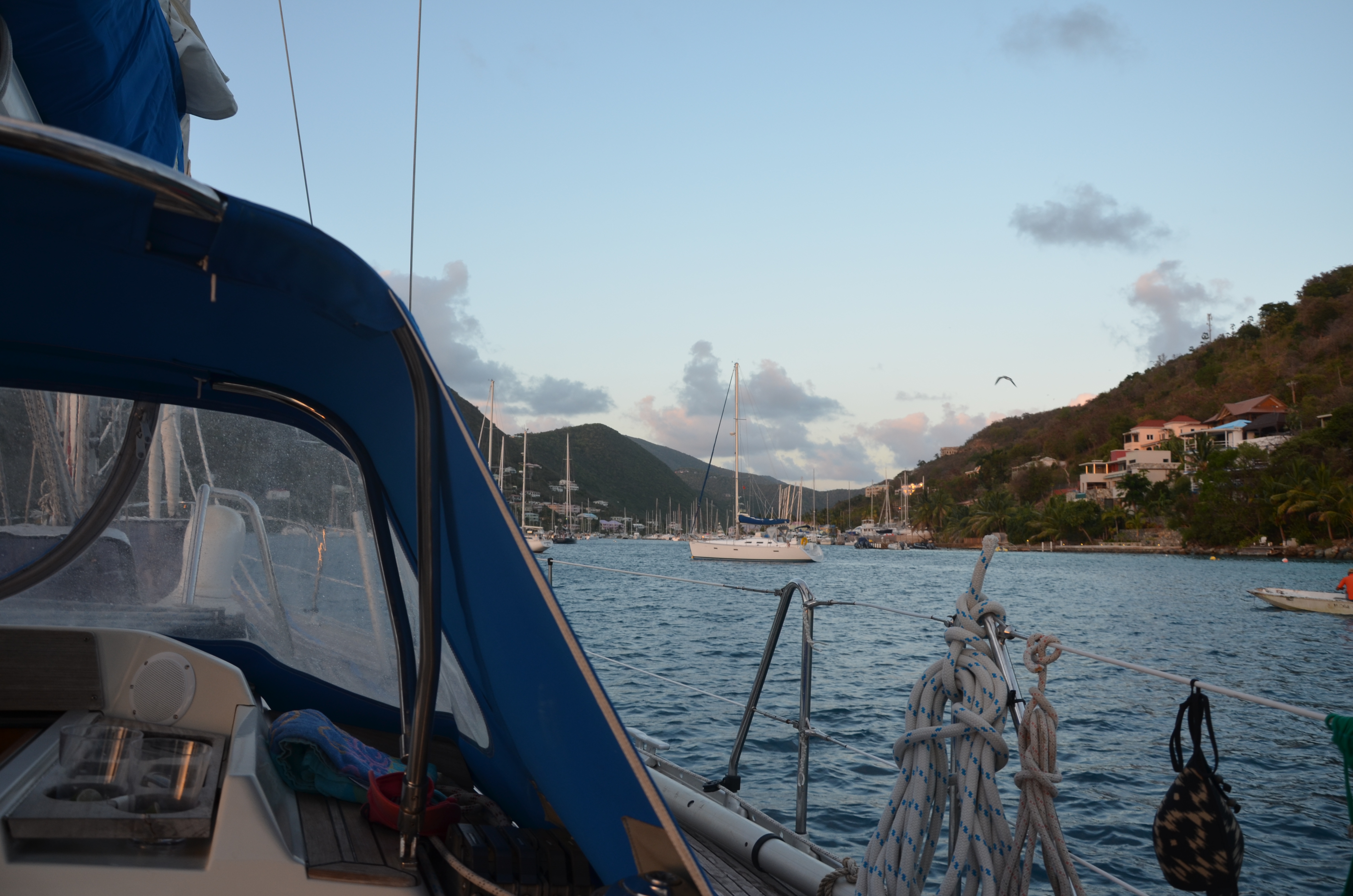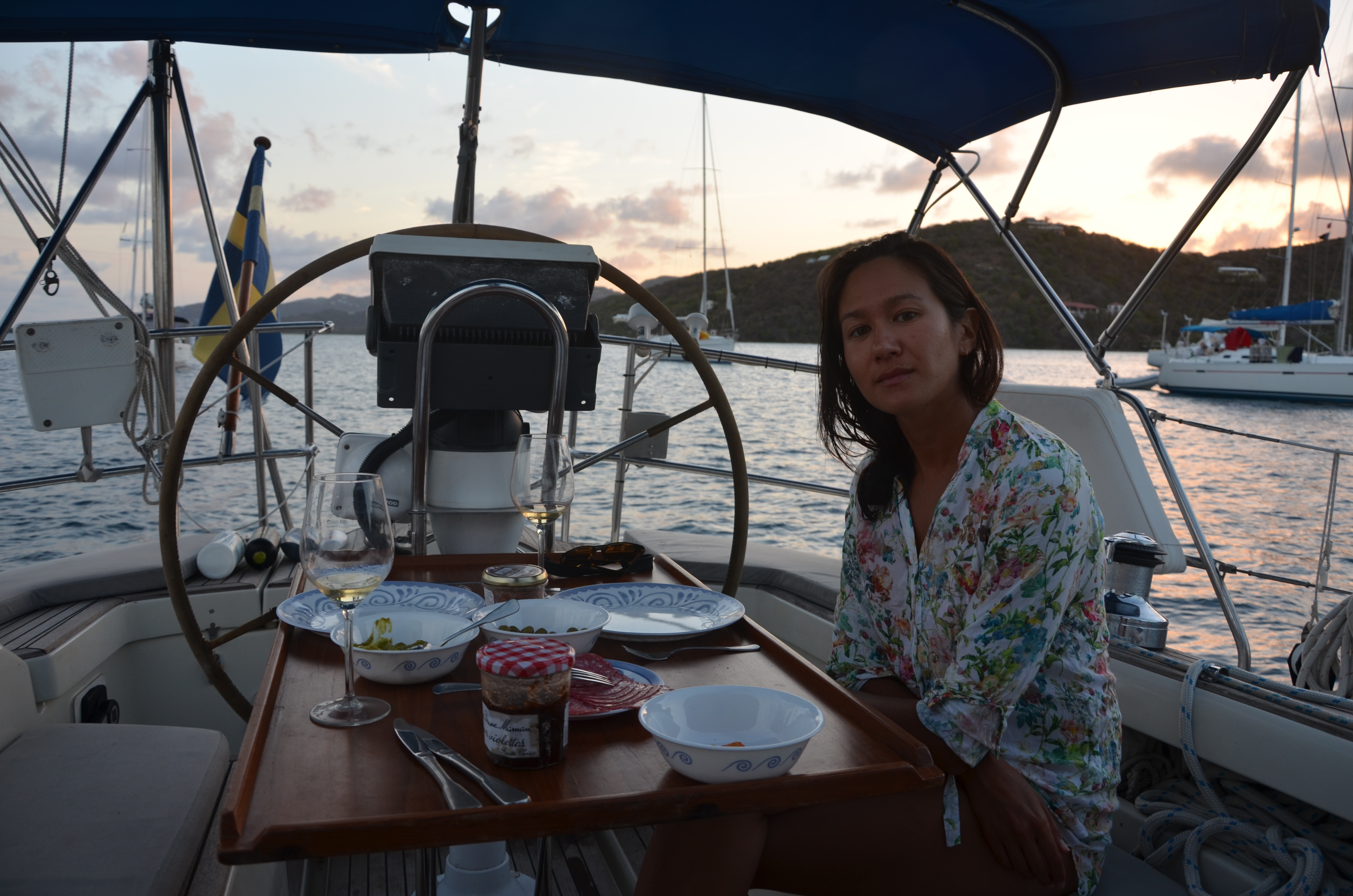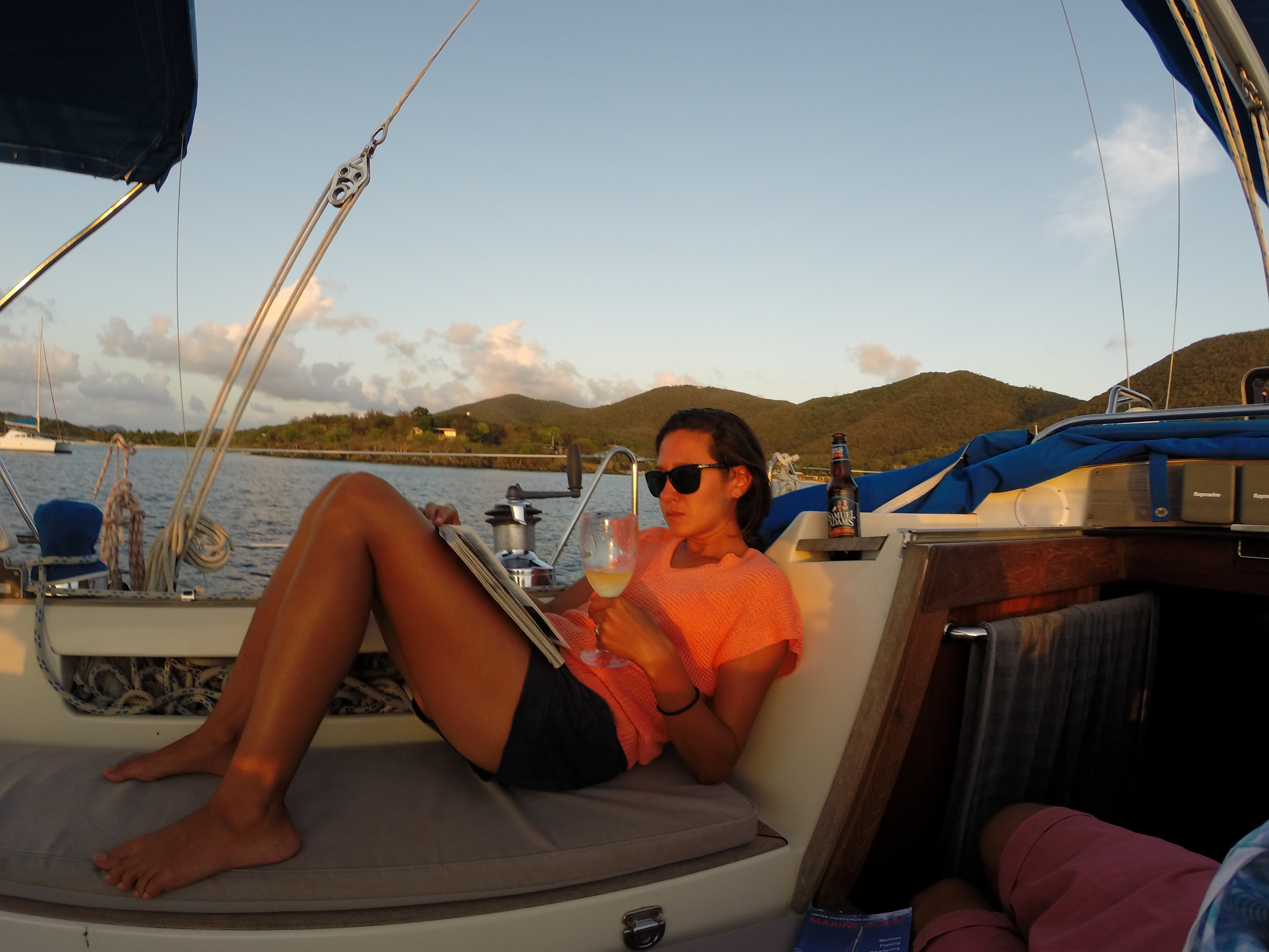 Erik simmade in till Ranger Station för att rapportera vår närvaro och US Coast Guard väntade i horisonten tills vi var tryggt ankrade. Därefter åkte större delen av dynor och kläder upp på däck för att torka innan vi åt en lugn och skön middag nere i salongen, följt av en trygg natts sömn (Vi somnade alla så fort huvudet landat på huvudkudden) Vi hade satt avgång till eftermiddagen dagen efter, då vindarna skulle vara aningen mer stabila – vilket också innebar att vi kunde äta påsklunch ankrade på Mona Island!
