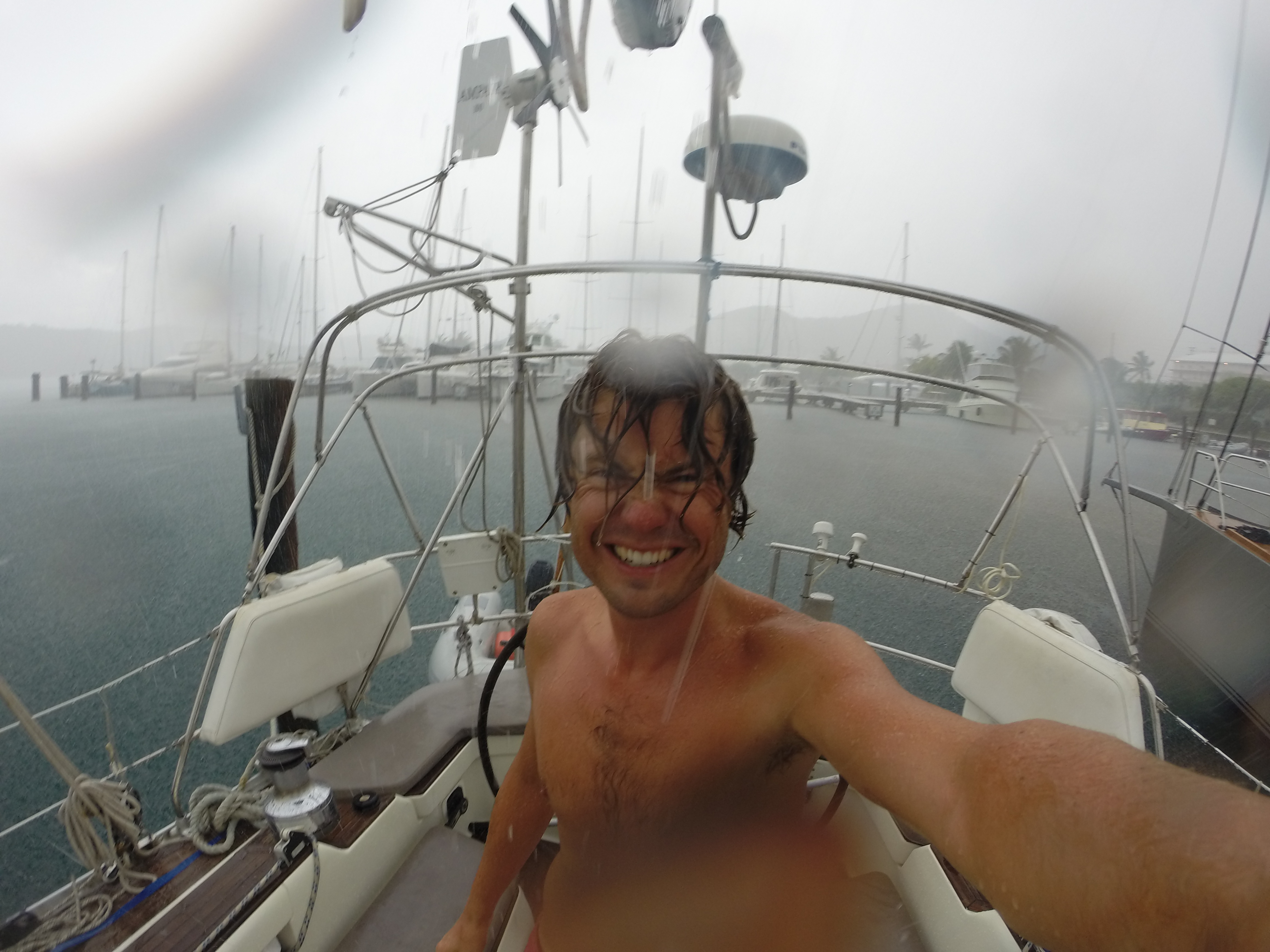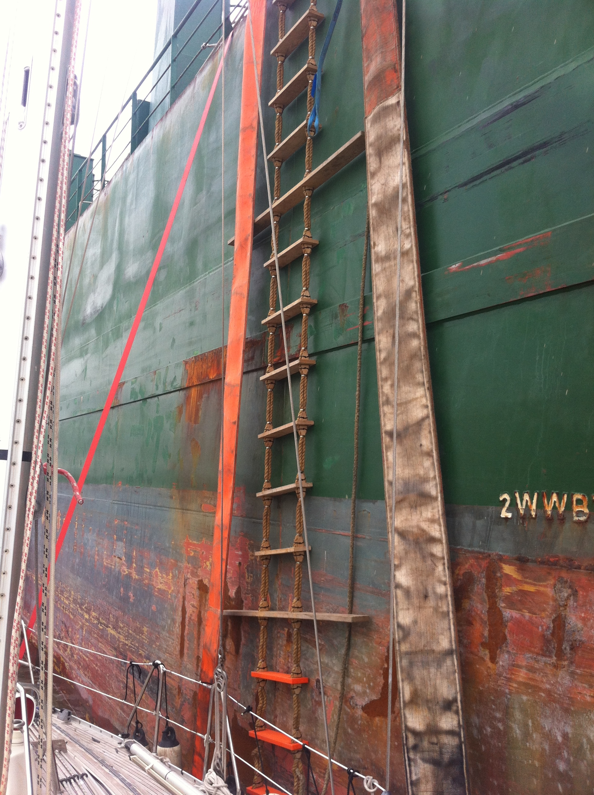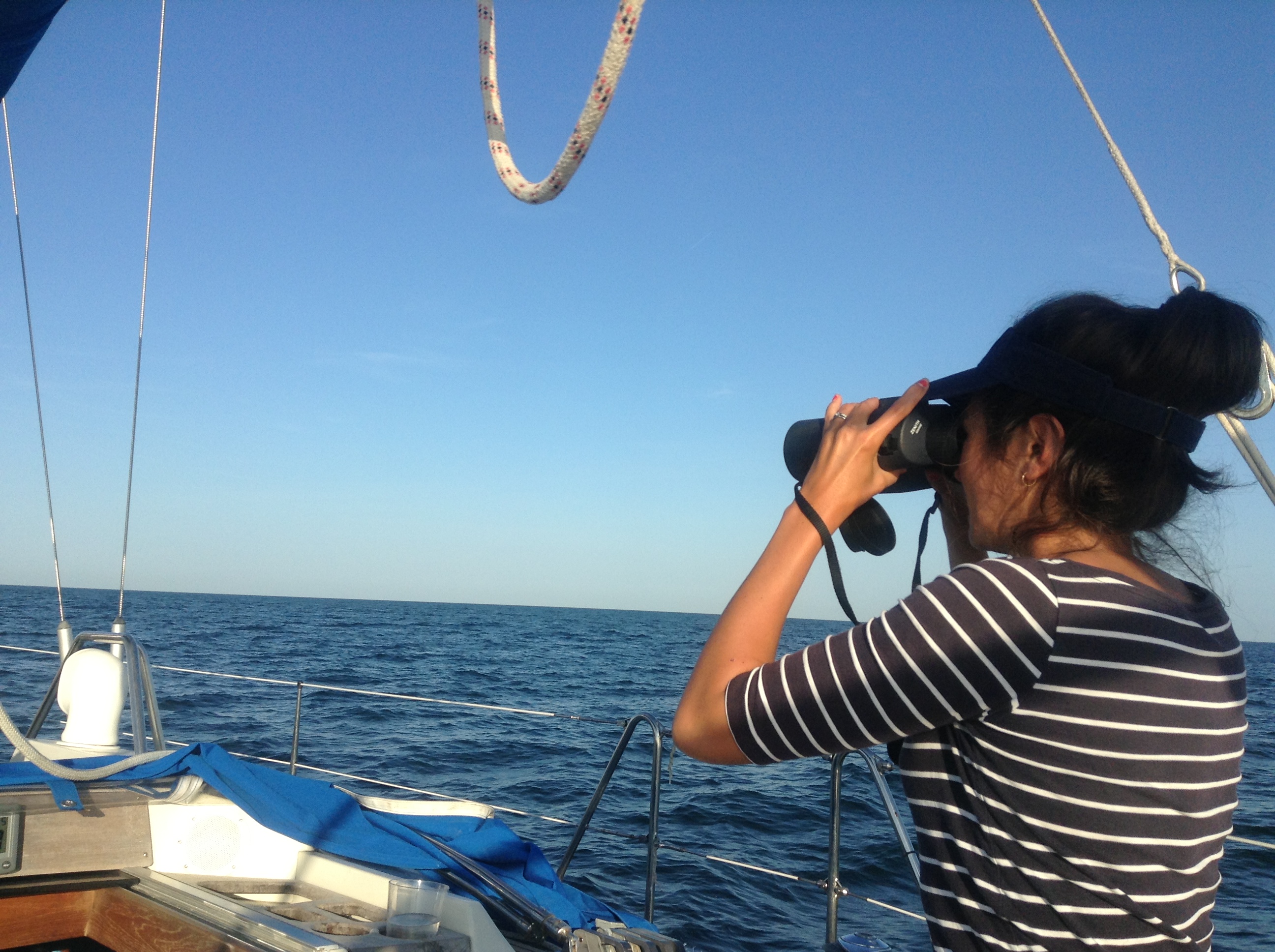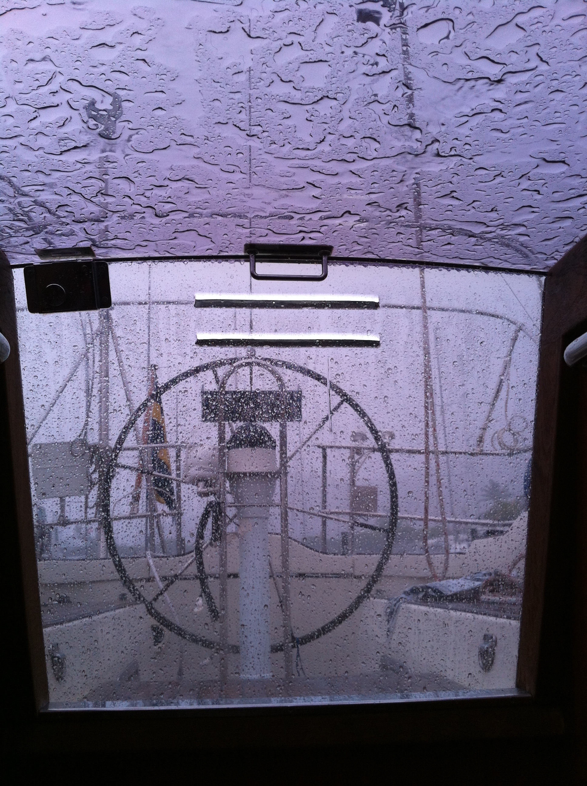 Det svåraste var kanske framför allt att vi inte kom framåt. Trots att Gåva tar höjd fint och har tillräcklig tyngd för att ta sig genom sjöarna var motströmmen så stark, regnet så kraftigt och vågorna som bröt över båten så stora att vi knappt tog någon höjd utan bara slog fram och tillbaks. Calma sjösjuketuggumin tuggades och under däck var allt totalt kaos med blöta dynor, tidningar, mat och kläder som flög eller flöt runt om vartannat. (Varje gång man gick ned i ruffen fick man lime, vitlöksklyftor, avocado och frukt i huvudet från fruktnätet) Hade coastguard nu boardat oss skulle de ha trott att de kommit till en knarkarkvart, så sunkig och stökig var båten. Helt ärligt var detta den värsta segling vi alla varit med om.