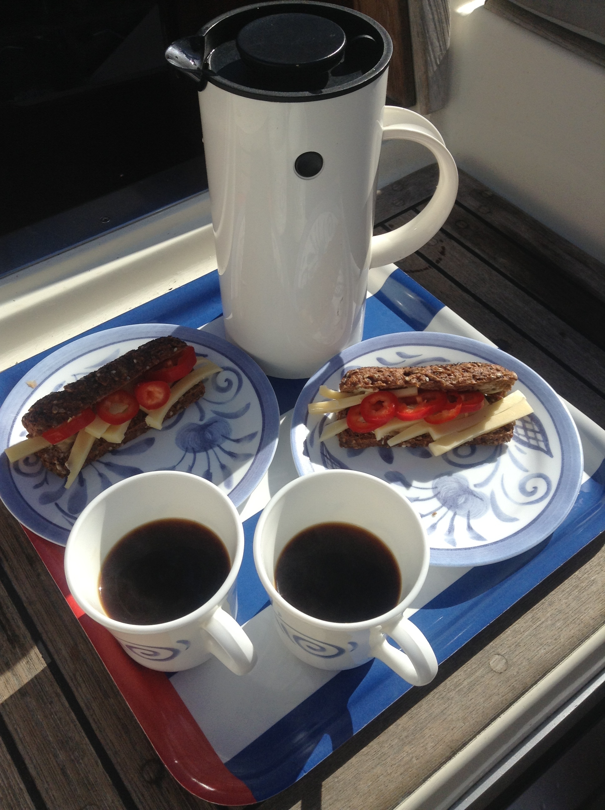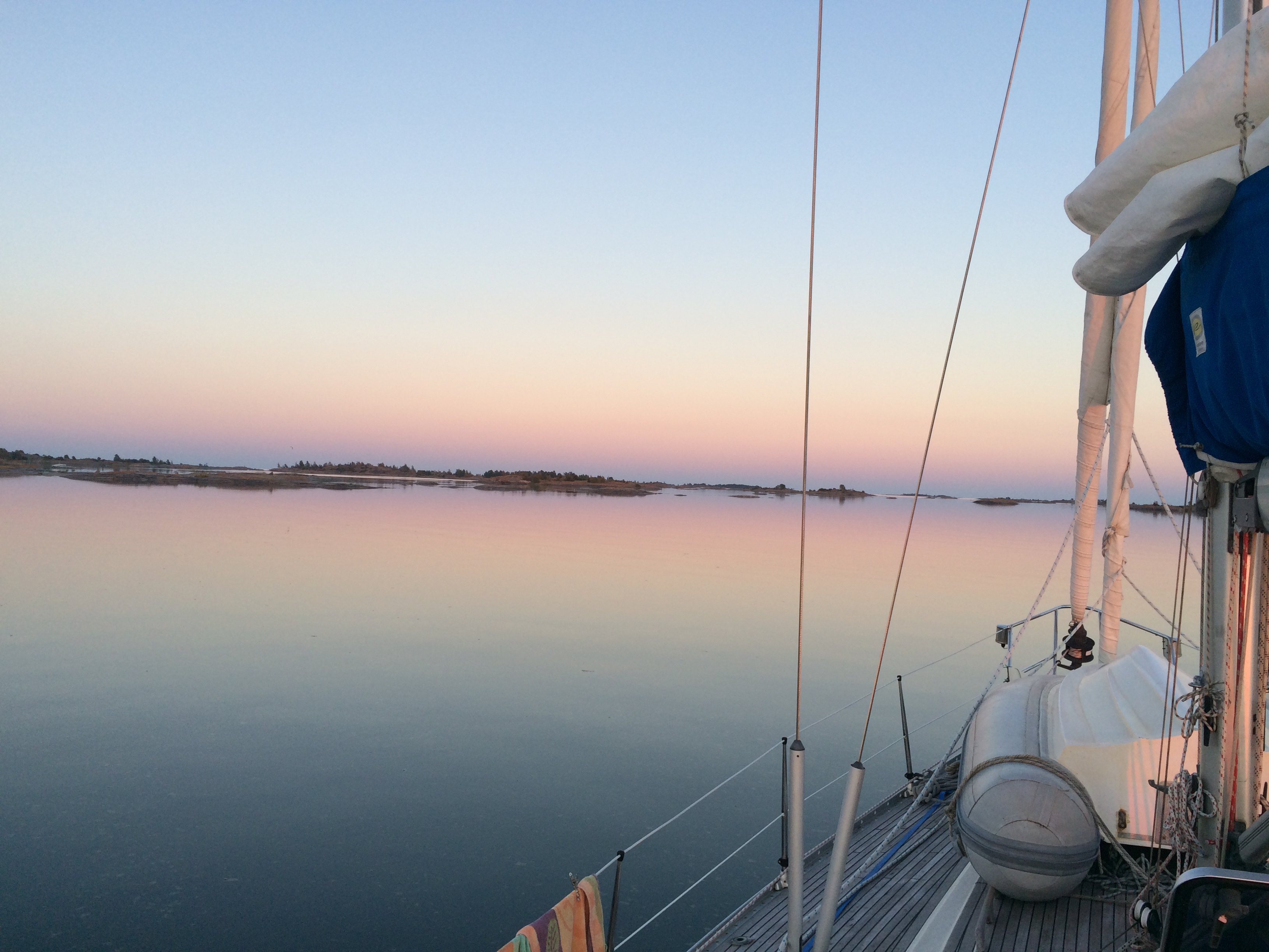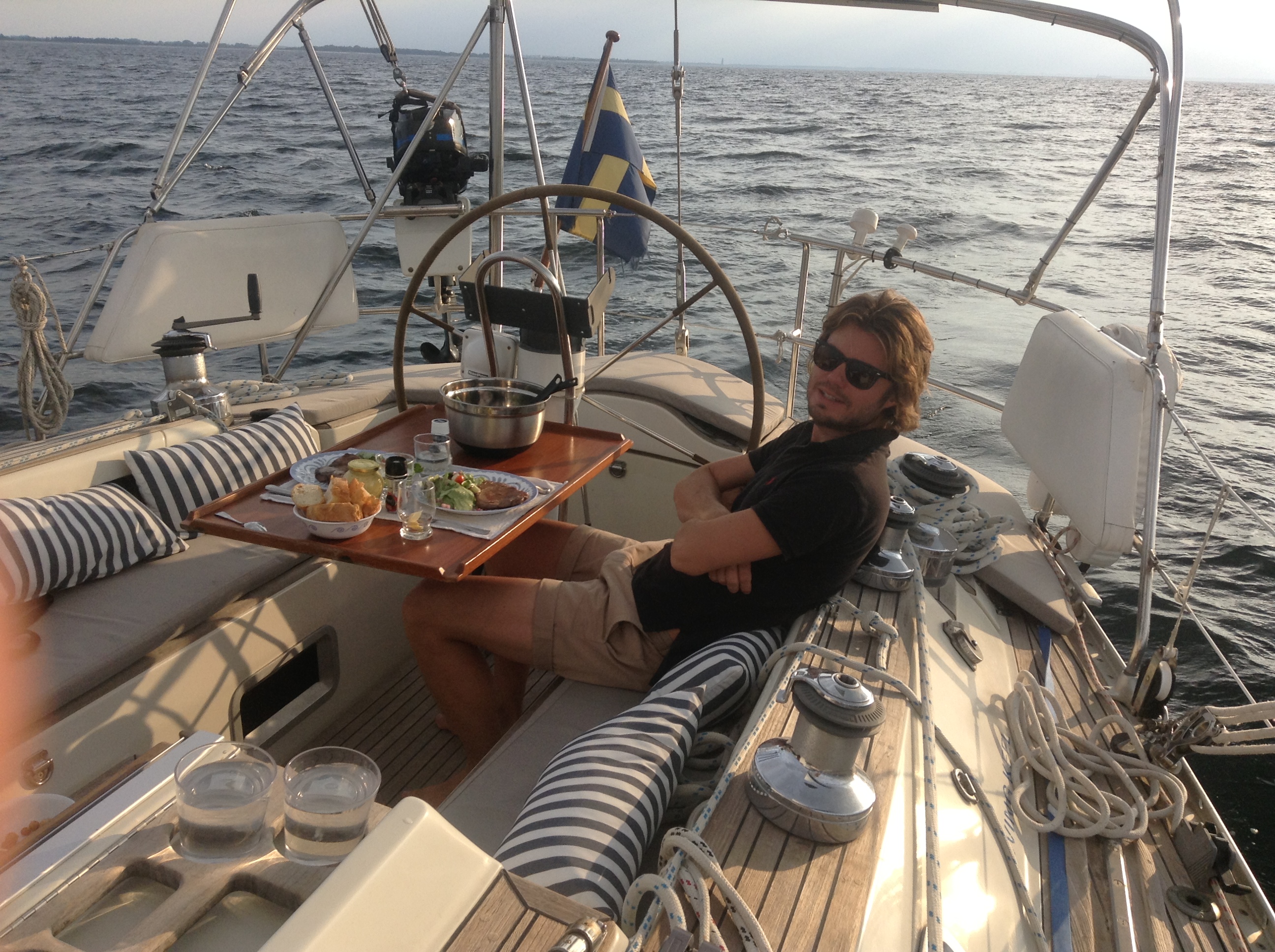 Hummerskalen åkte överbord, Erik kastade sig in i jollen för att skaffa tillstånd att lätta ankar och Johan och Hanna svepte det sista vinet.
