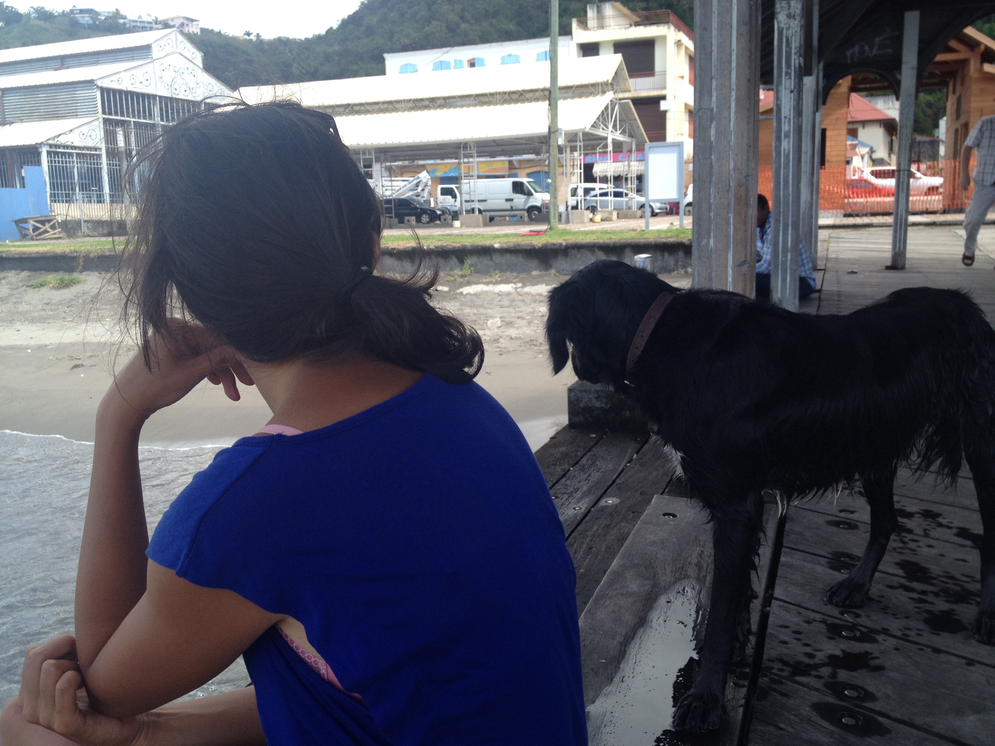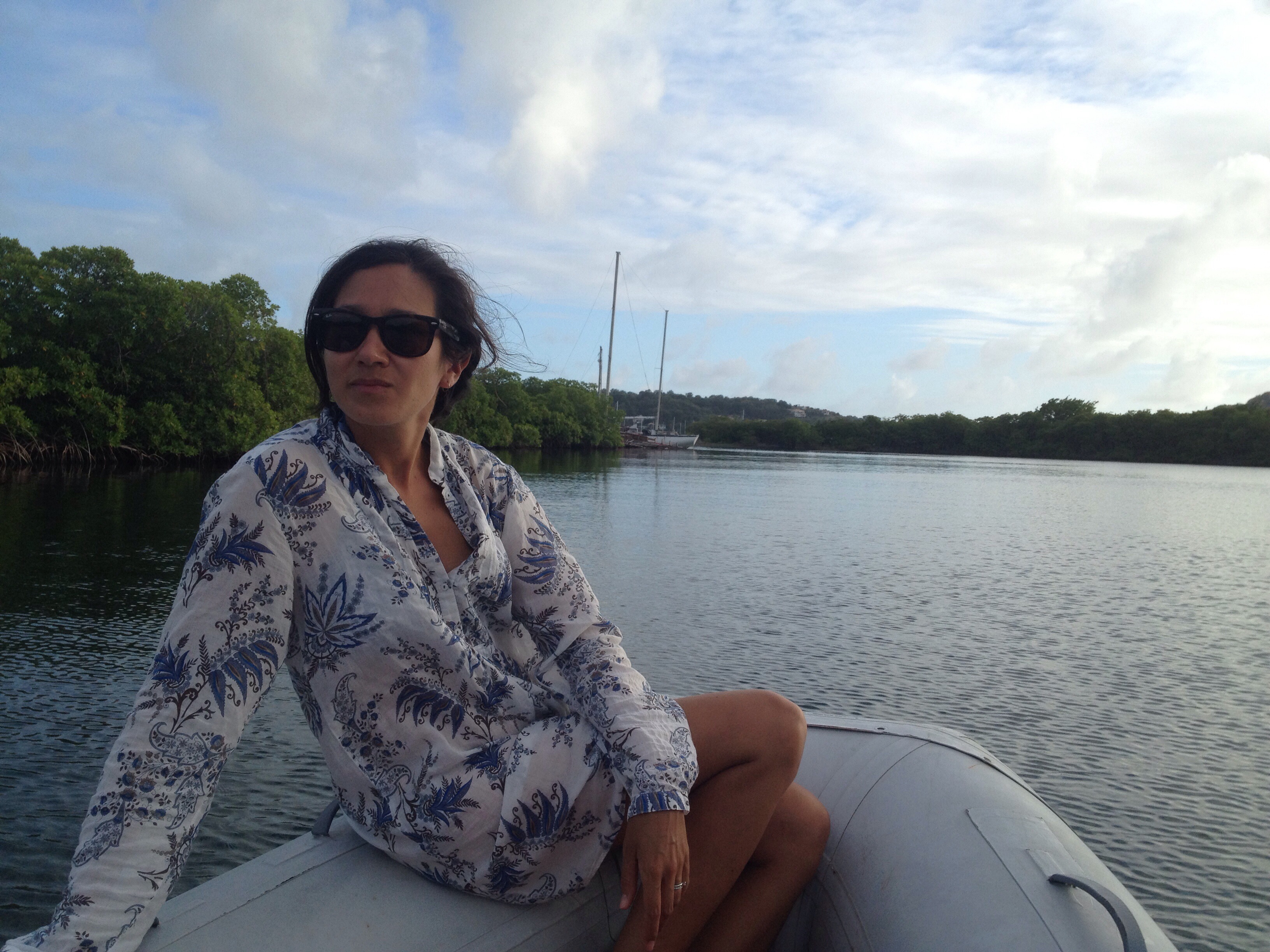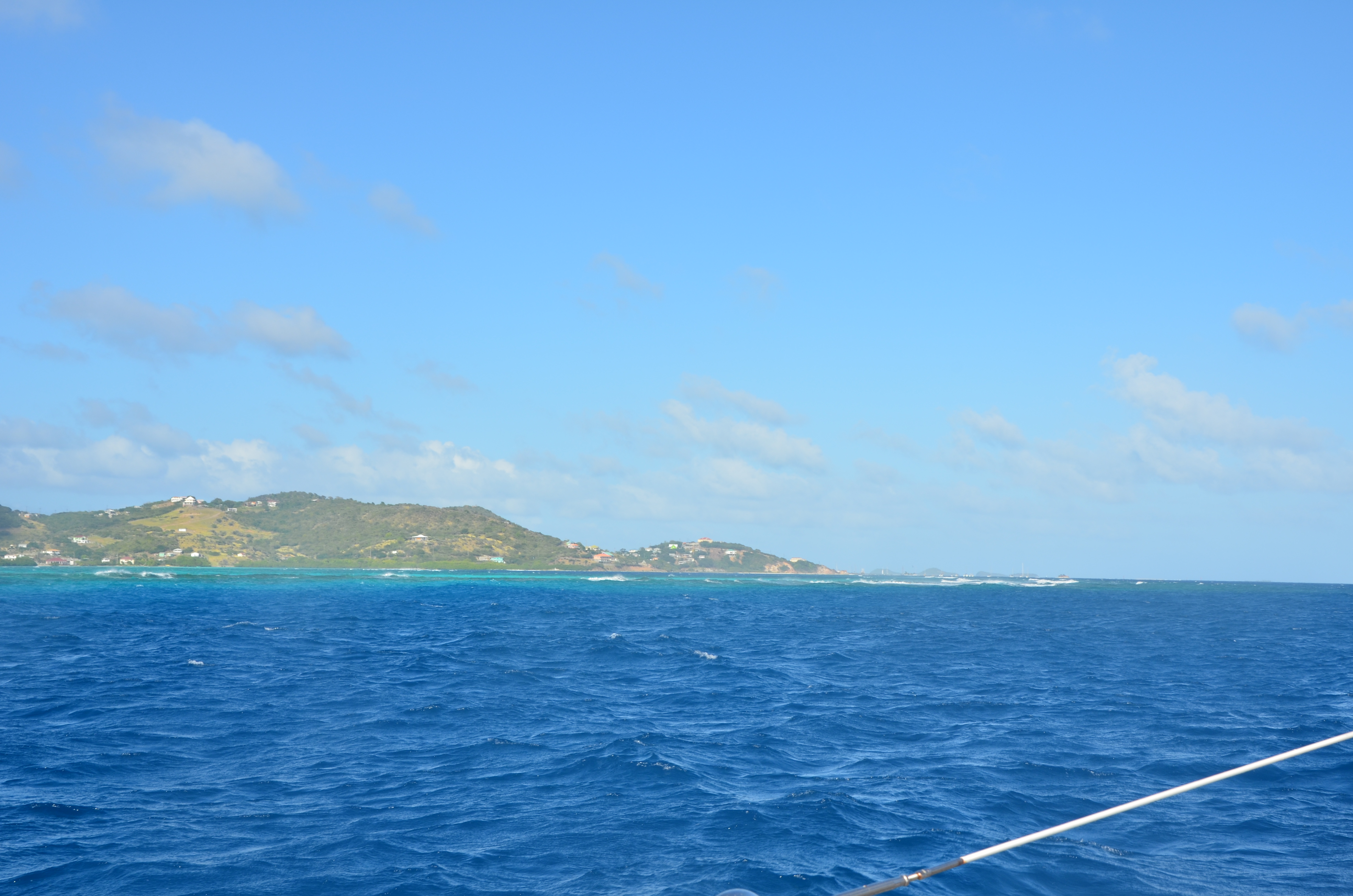 Zinc hade helt enkelt av alla människor på ön hittat sin nya husse och matte för dagen. Vart vi än gick följde hon efter (törstig och kaktusbiten), till slut runt hela ön – en promenad på fyra timmar. När vi till slut kom tillbaks till hamnen gick vi in till ett security kontor (det finns gott om security killar i vita pikéer och små golfbilar) för att lokalisera ägaren. För en stund drömde vi om att bli bjudna på en spektakulär middag som tack för hjälpen men Zinc´s ägare nöjde sig med att skicka sin betjänt i en golfbil så det kändes nästan lite snopet när vi vinkade farväl till Zinc där han satt i baksätet på väg tillbaks till Windsong. Kvällen bjöd istället på matlagning ombord inför seglingens hittills längsta överfart – Mustique – St Lucia.