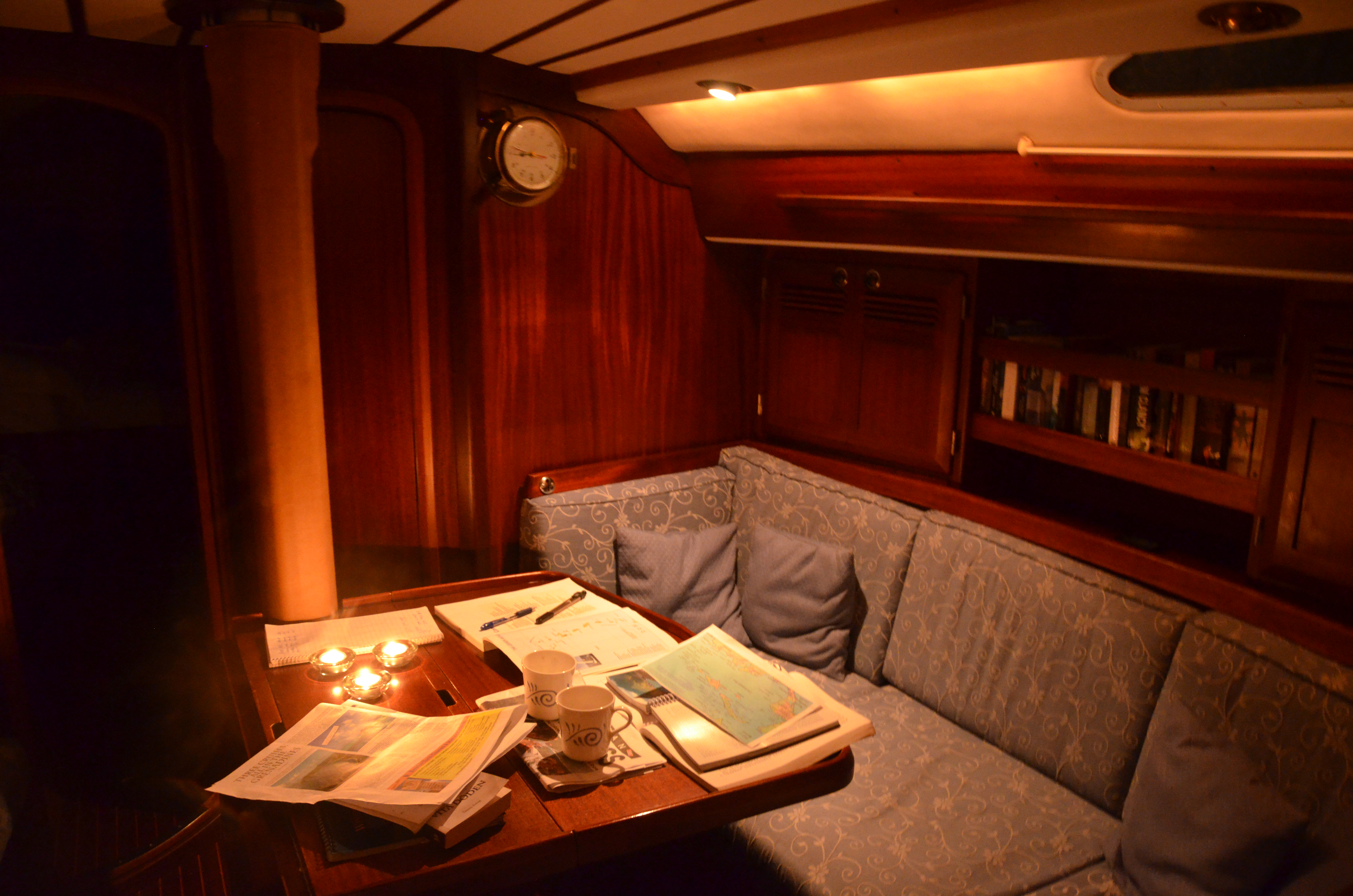 Dag 2 blev heldag snorkling på diverse olika ställen där bergen stupar ned i havet och avslutades med att vi bjöd över Tom och Annie på middag. Kändes super härligt att fixa middag på Gåva och ha lite besök. Tricket här är att laga all middag innan det blir mörkt då det annars blir olidligt varmt nere i båten på kvällen så att man i lugn och ro kan njuta av stjärnhimlen och middagen i sittbrunnen medan helan båten svalkas av inför natten. På svenskt manér kör vi mycket stormlykta och värmeljus när det blir mörkt för att maximera mysfaktorn som en riktigt augustikväll..