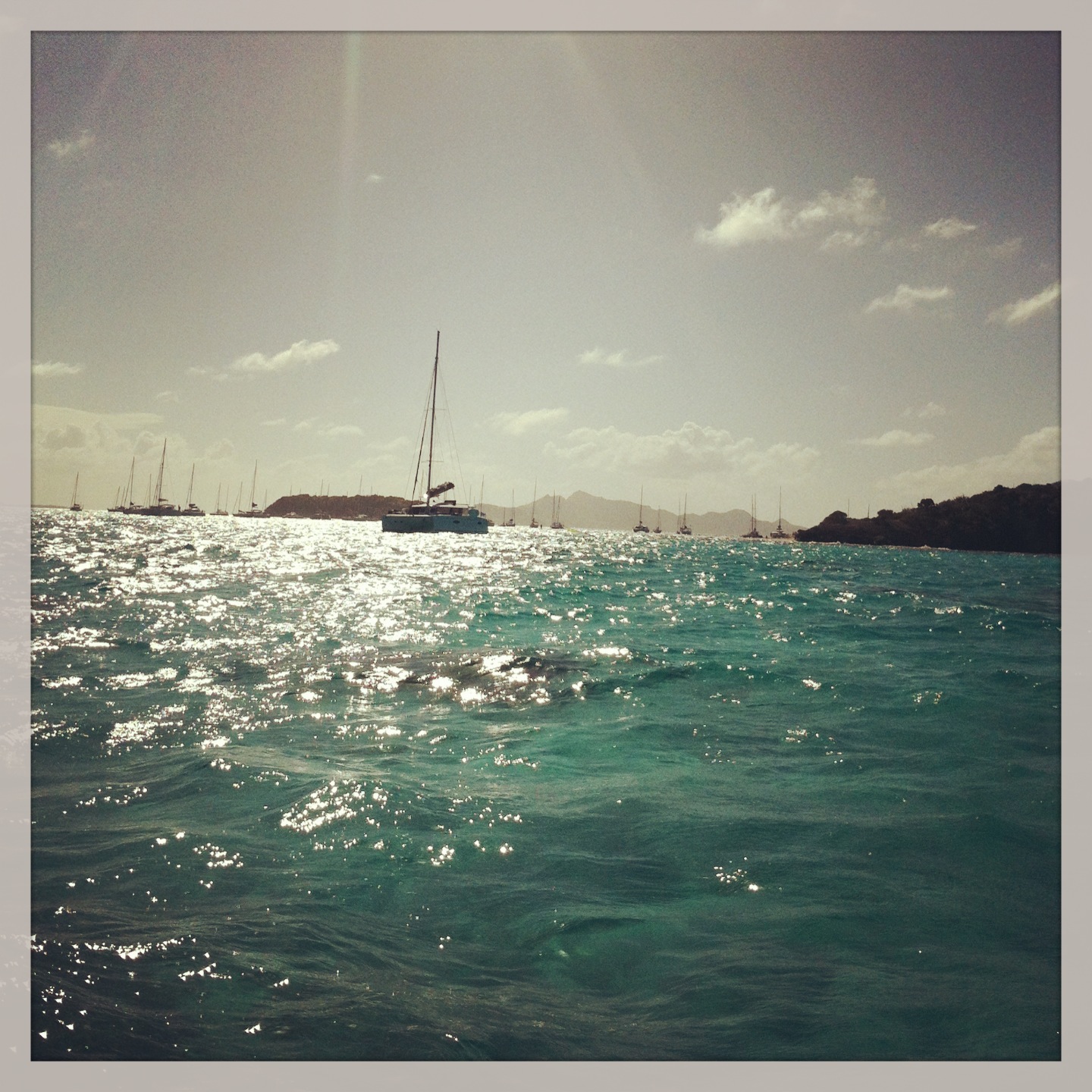 Vi hade en härlig visit på Mustique. En kort (i distans) men lång (i timmar p.g.a. alla strömmar och motvind) segling fick vi tag på den sista bojen i viken. Vid Mustique ankrar man helst inte, utan tar en av de med Karibiska mått mätt extremt välskötta bojarna där en artig och välklädd kille i vit piké och välputsad Rib kommer ut för att ta emot betalning. Dyrt, men väl värt att kunna sova tryggt i tre nätter! Inte minst när vattnet är kristallklart och bjuder på ett helt akvarium under kölen.