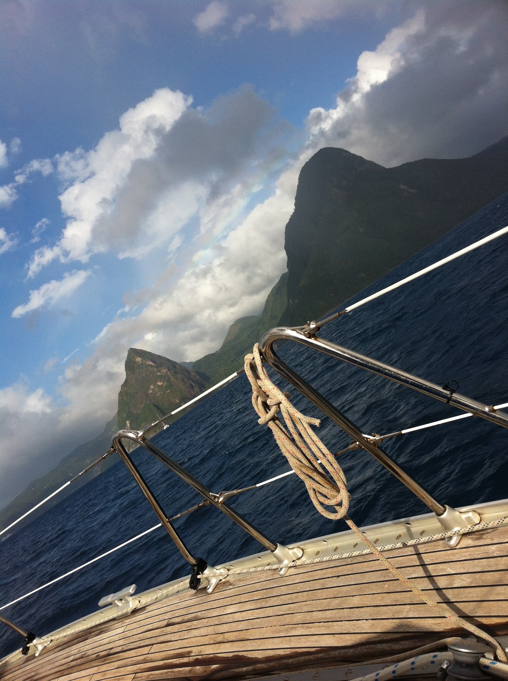 Strax efter 1500 rundade vi St Lucias sydspets och satte kurs på Soufriere. Tyvärr missade Erik större delen av inseglingen då han låg upp och ner i SB koj och skruvade isär vattenpumpen som hade gett upp, men likväl var det enormt mäktigt att glida in bland de höga bergen.