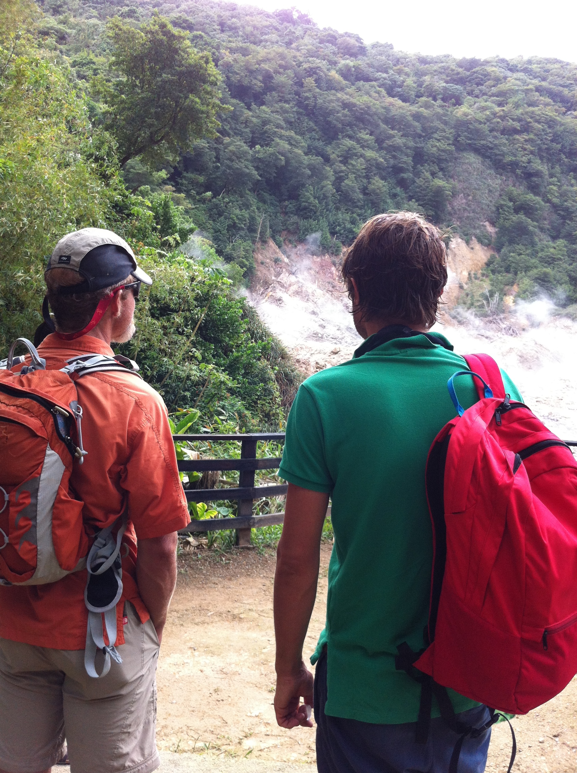 Till vår stora glädje dök Tom och Annie upp senare samma eftermiddag så vi kunde ta en utflykt upp till vulkanen och bada i heta källor. Underbar kontrast mot allt saltvatten, följt av en mycket lokal men god middag inne i stan.