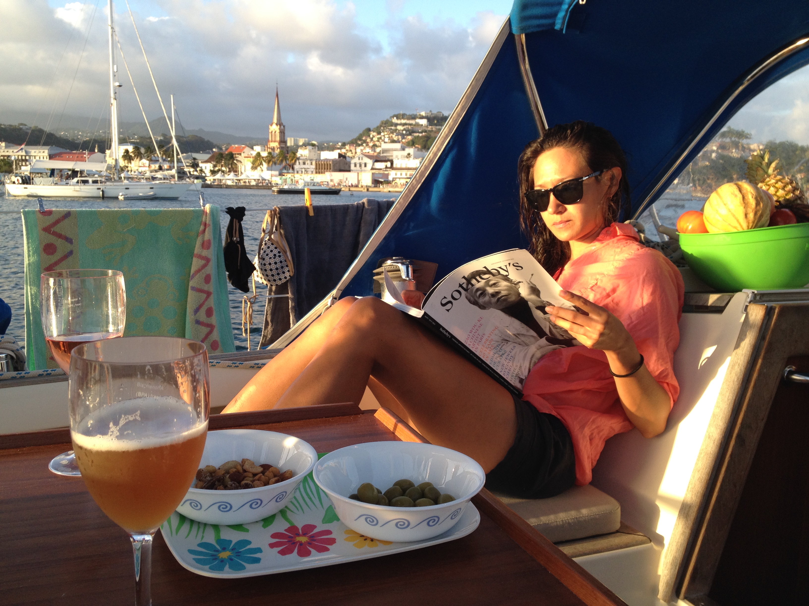 En snabb tur iland samma kväll bekräftade att utbudet av såväl franska viner som ankbröst, lamm racks, croissanter och yoghurt (sällsynt i karibiska mat affärer) talade för en helt klart välorganiserad tillvaro på ön.